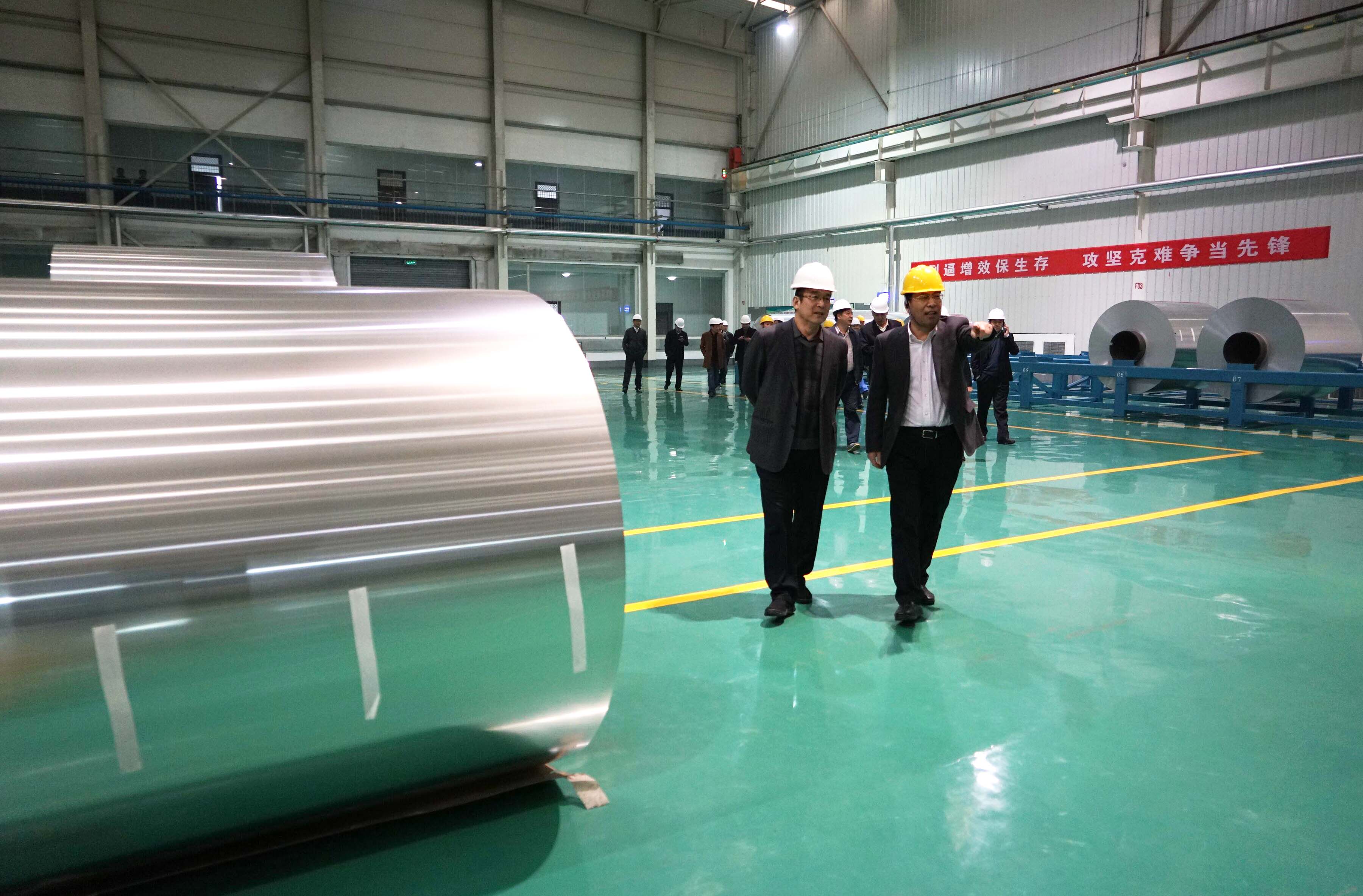 在萬基鋁加工公司,長向來訪領(lǐng)導(dǎo)匯報(bào)集團(tuán)公司生產(chǎn)經(jīng)營及環(huán)保治理情況。